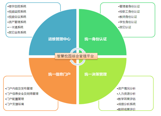 信息化管理平臺對各子系統資源的整合、優化、分析并對校園組織和業務流程進行再造,推進校園制度創新、管理創新和服務創新,實現教育管理的信息化、決策的科學化、管理的規范化。